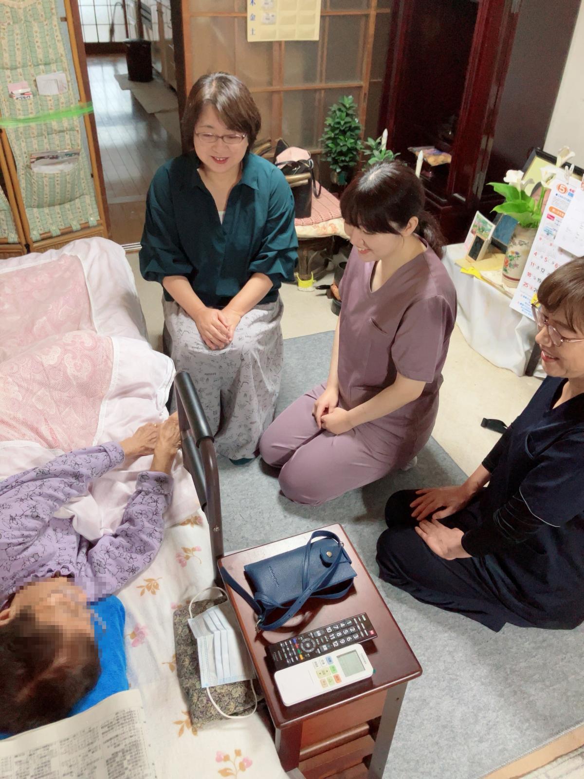 80代のお母さまを心配された娘様が、かかりつけ医に相談されました。医師から訪問看護を勧められたことをきっかけに支援が始まりました。ご本人は「自宅で暮らしたい」と望まれ、ご家族は「施設の方が安心」と悩まれていました。看護師、ケアマネジャー、新人スタッフが同席して話し合い、必要な支援を組み合わせることで、自宅での生活を続けながらご家族も安心できる体制を整えました。